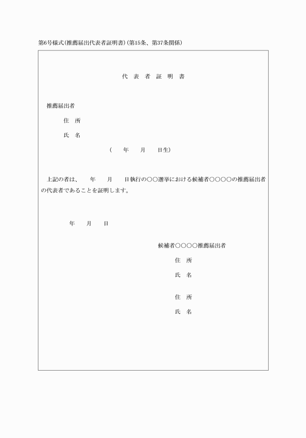 第6条 玉川村の議会の議員及び長の選挙に用いる投票用紙は、第1号様式とする。