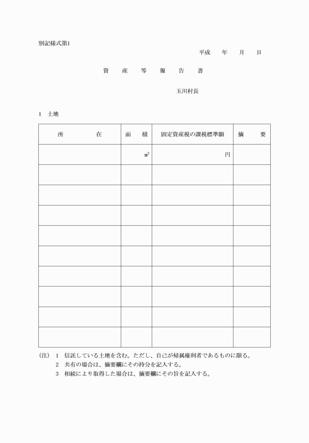 第1条 政治倫理の確立のための玉川村長の資産等の公開に関する条例(平成7年玉川村条例第19号。以下「条例」という。)第2条第1項各号に掲げる資産等には、外国にある資産等を含むものとする。