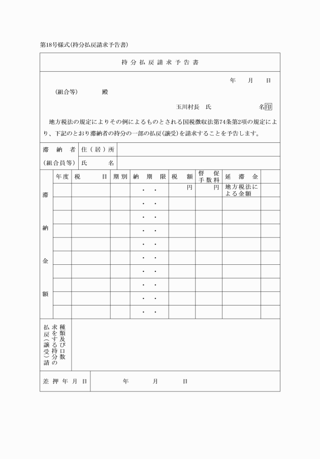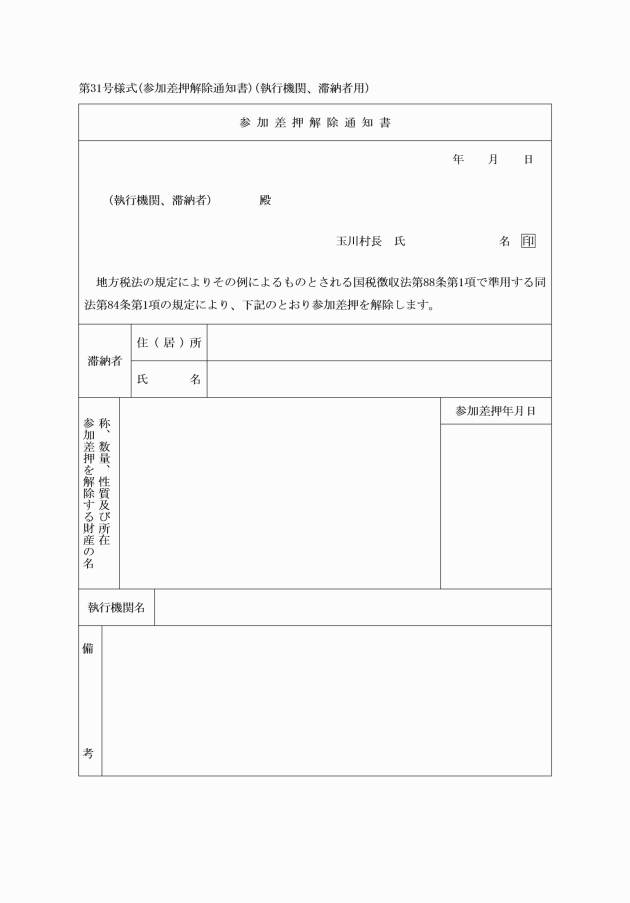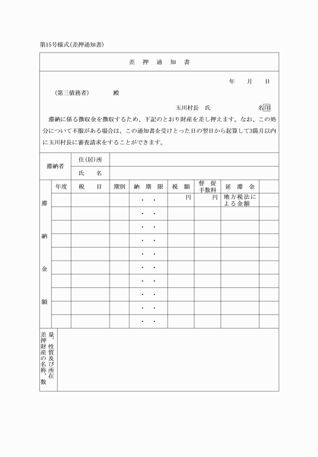 ○玉川村税の滞納処分に関する文書の様式を定める規則