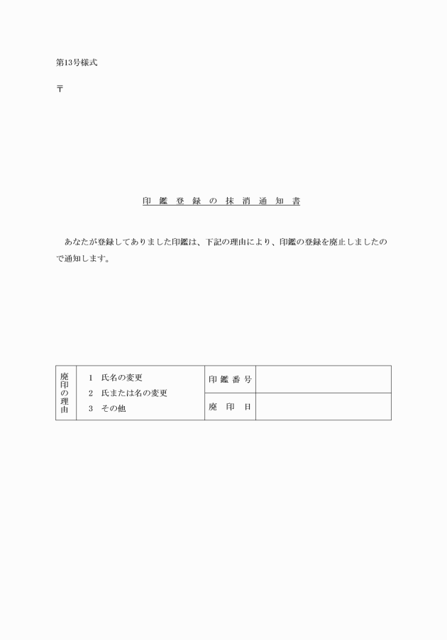 (13) 印鑑登録の抹消通知書 別記第13号様式