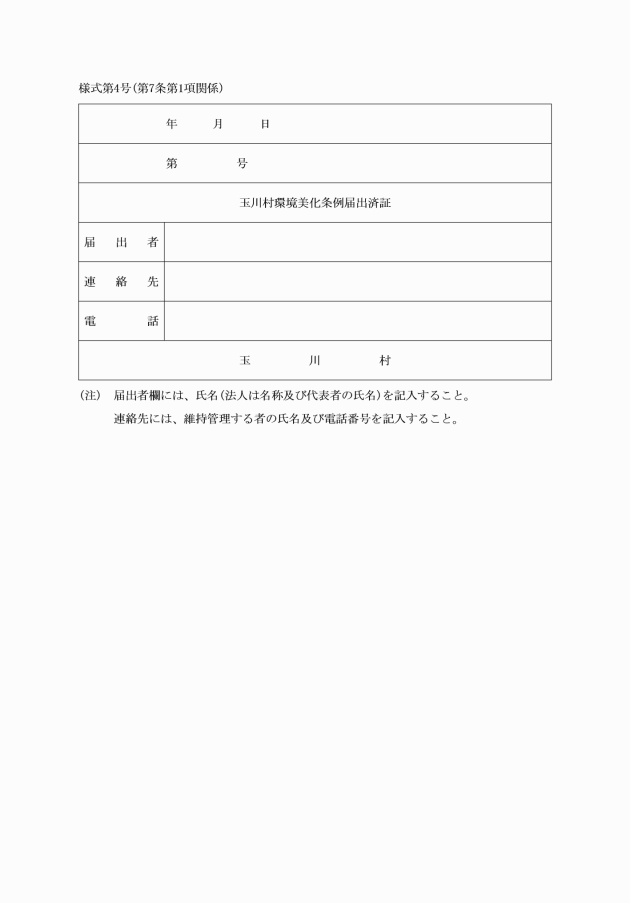 第1条 この規則は、玉川村環境美化条例(平成12年玉川村条例第37号。以下「条例」という。)の施行に関し必要な事項を定めるものとする。