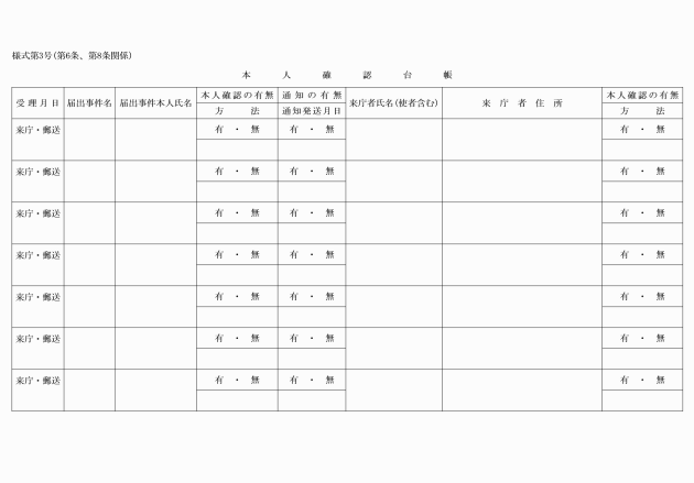 第8条 本人確認後の通知書発送等、確認後の処理については、本人確認台帳(様式第3号)に必要事項を記入して行う。