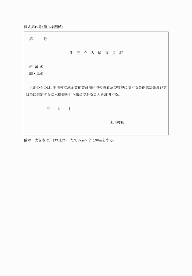 ○玉川村立地企業従業員用住宅の設置及び管理に関する条例施行規則