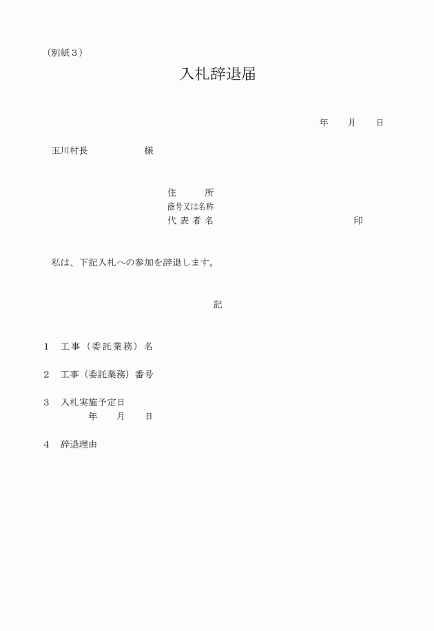 4 入札を辞退した者は、これを理由として以後の指名等について不利益な取扱いを受けることはない。