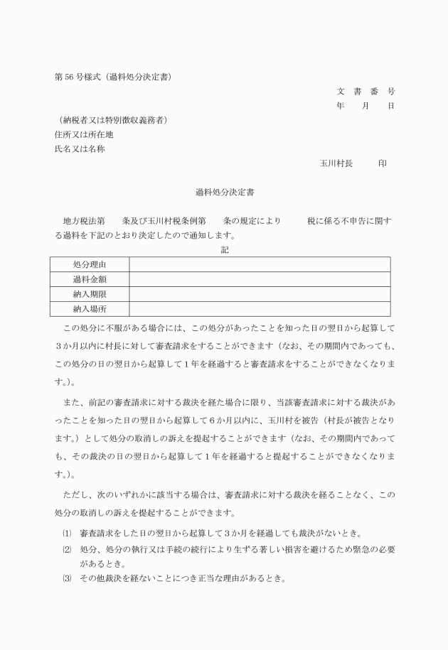 第53条 村税の犯則事件について作成する書類は別に定めるところによる。