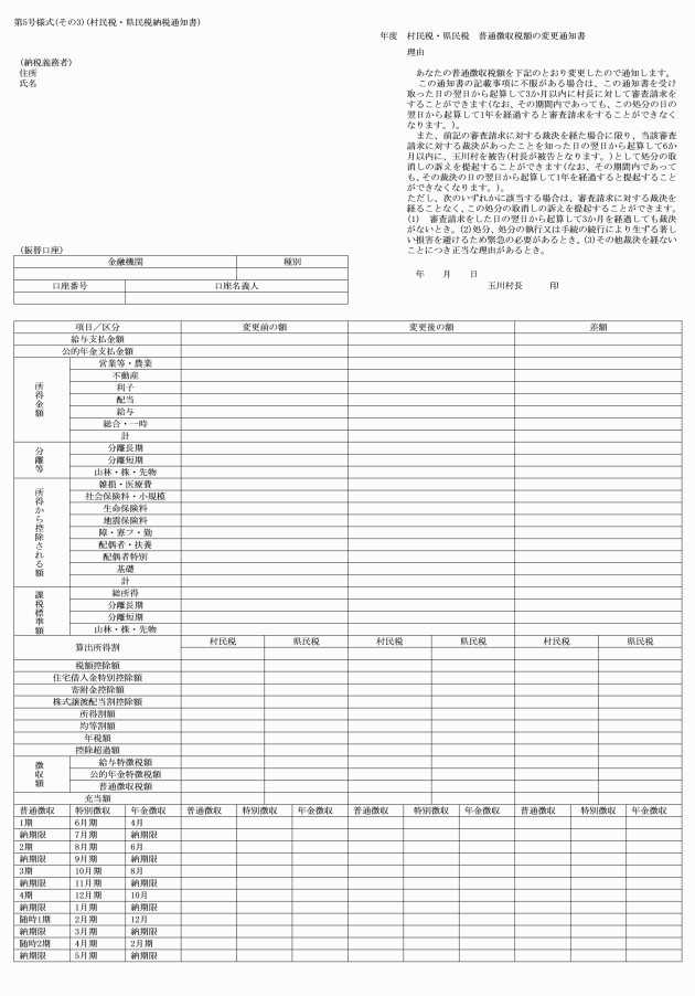 2 法第321条の4第1項及び法第321条の6第1項の規定による納税の通知は、村民税・県民税特別徴収額決定(変更)通知書(第66号様式)による。