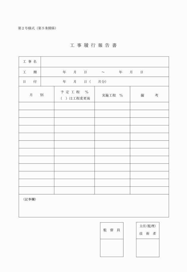 (2) 工程表により工期の2分の1を経過するまでに実施すべきものとされている当該工事に係る作業が行われていること。